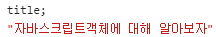 '제목' : '자바스크립트객체에 대해 알아보자',