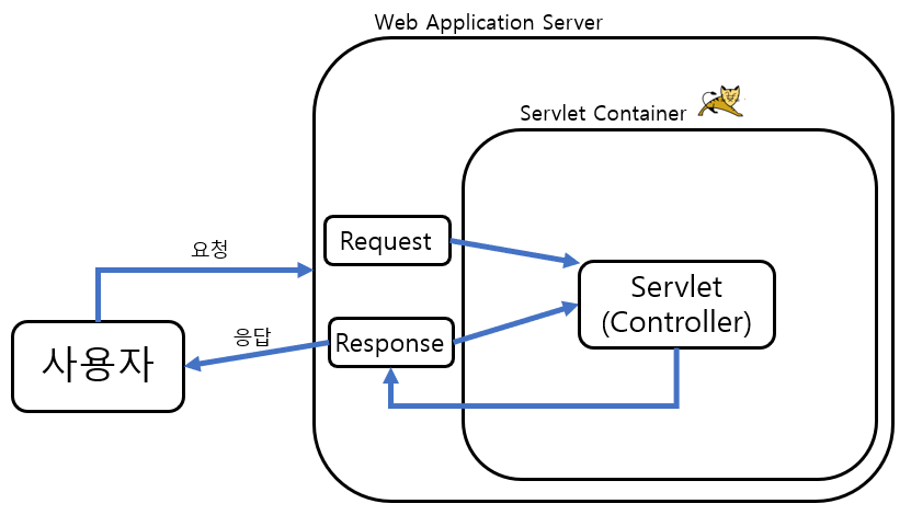 - 독자적으로 실행될 수 없고 Tomcat과 같은 서블릿을 지원하는 서블릿 컨테이너를 통해 실행된다.